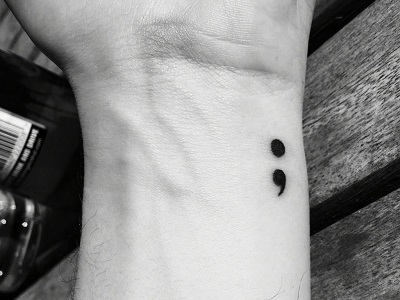 Dấu chấm phẩy đánh dấu vị trí đóng vai trò thường là tạm dừng trong câu, nhưng không phải là kết thúc. Hình xăm nhỏ ý nghĩa này nhắc nhở rằng: Sau này trong cuộc đời dài đằng đẵng kia có những tình huống tưởng như bạn phải dừng lại, nhưng bạn đã lựa chọn tiếp tục.