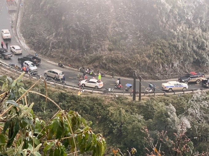 Du khách Nguyễn Huấn cho biết, từ tối 11/1 đến trưa 12/1, cảnh sát cấm đường nên từ thị xã Sapa lên đỉnh Ô Quy Hồ (khoảng 15 km) xuất hiện nhiều điểm ùn tắc cục bộ. Do đường đèo trơn trượt nên các tài xế đã tắt máy, xuống chèn bánh để phương tiện không bị trôi.