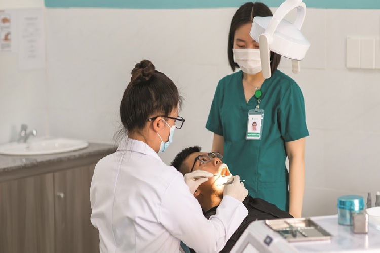 ⦁ Nha sĩ thực hiện thăm khám tổng thể sức khỏe răng miệng và cấu trúc răng để xác định hướng điều trị.