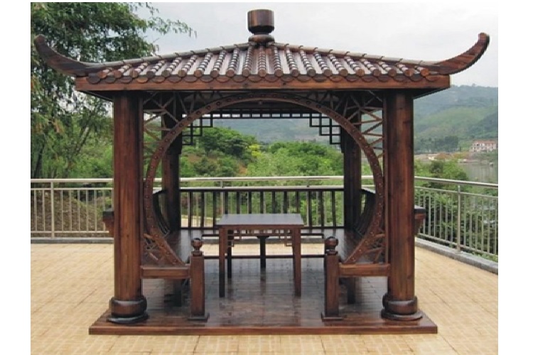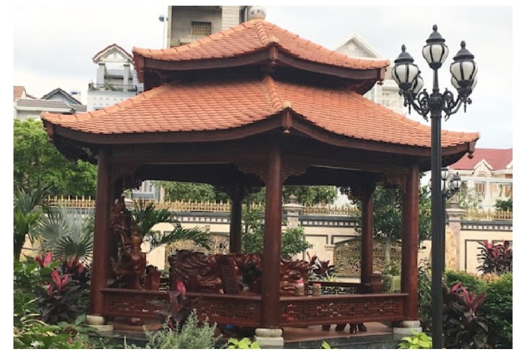 ⦁ Nhà gỗ lục giác còn gọi là nhà thủy tạ, được xây dựng trên hồ cá để chủ nhân vừa câu cá giải trí, vừa ngắm nhìn mây trời.